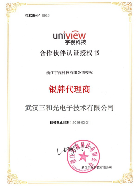 宇視行業(yè)銀牌認(rèn)證2015-2016