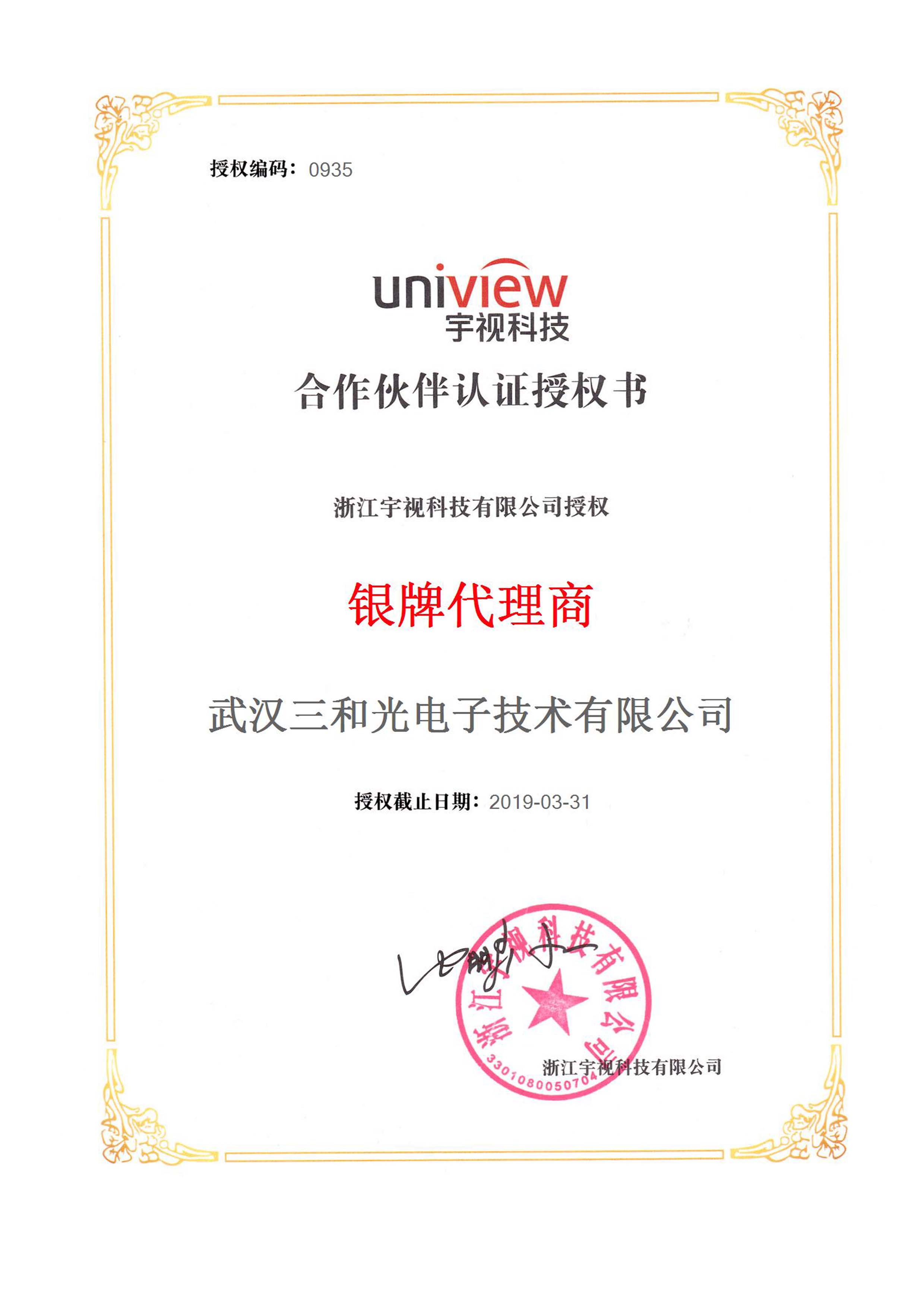 宇視銀牌代理商-2018年