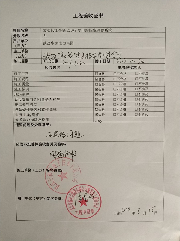武漢東湖新技術(shù)開發(fā)區(qū)國家存儲器基地長江存儲220KV變電站安防監(jiān)控工程竣工驗收!