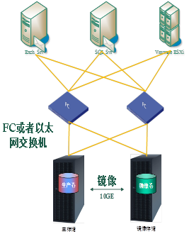 對(duì)稱雙活存儲(chǔ)系統(tǒng)基于萬兆以太網(wǎng)的光纖互連,并且能夠與主流應(yīng)用廠商的雙機(jī)、集群系統(tǒng)兼容。因此,雙活鏡像存儲(chǔ)系統(tǒng)不僅可以部署在一個(gè)數(shù)據(jù)中心內(nèi)部,也可部署在相距數(shù)十公里的兩個(gè)數(shù)據(jù)中心之間。在一個(gè)數(shù)據(jù)中心內(nèi)部,可實(shí)現(xiàn)雙服務(wù)器+雙陣列的高可用部署;在兩個(gè)數(shù)據(jù)中心之間,通過配合遠(yuǎn)距離集群軟件(比如VMware FT),可實(shí)現(xiàn)雙數(shù)據(jù)中心的自動(dòng)故障切換。