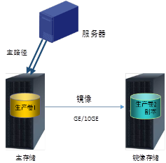 傳統(tǒng)的基于存儲(chǔ)鏡像功能的災(zāi)備方案使用同樣的硬件和軟件環(huán)境創(chuàng)建一個(gè)與生產(chǎn)存儲(chǔ)完全相同的鏡像存儲(chǔ),并通過存儲(chǔ)硬件鏡像功能將生產(chǎn)存儲(chǔ)設(shè)備上的數(shù)據(jù)復(fù)制到鏡像存儲(chǔ)。