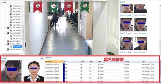 可設(shè)置黑名單,一旦與黑名單中人臉相似度高的人員出現(xiàn),即可報(bào)警。