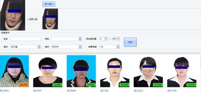 人臉檢索:軟件平臺(tái)下發(fā)人臉檢索任務(wù)后,人臉結(jié)構(gòu)化分析服務(wù)器通過處理,將結(jié)果返回給客戶端,包括人員圖片、人員ID以及相似度等信息。