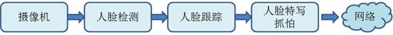 前端相機(jī)IPC主要負(fù)責(zé)進(jìn)行人臉檢測(cè)和跟蹤,之后把抓拍的人臉圖片上傳至人臉服務(wù)器進(jìn)行分析。