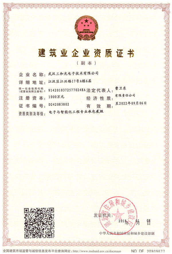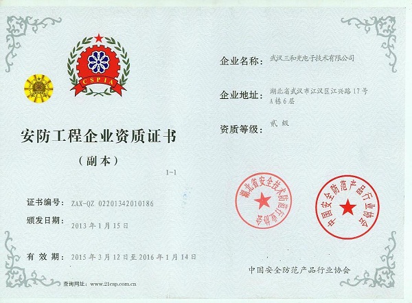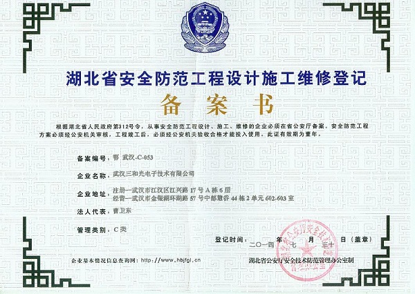 湖北省安全防范工程設(shè)計施工維修登記備案證