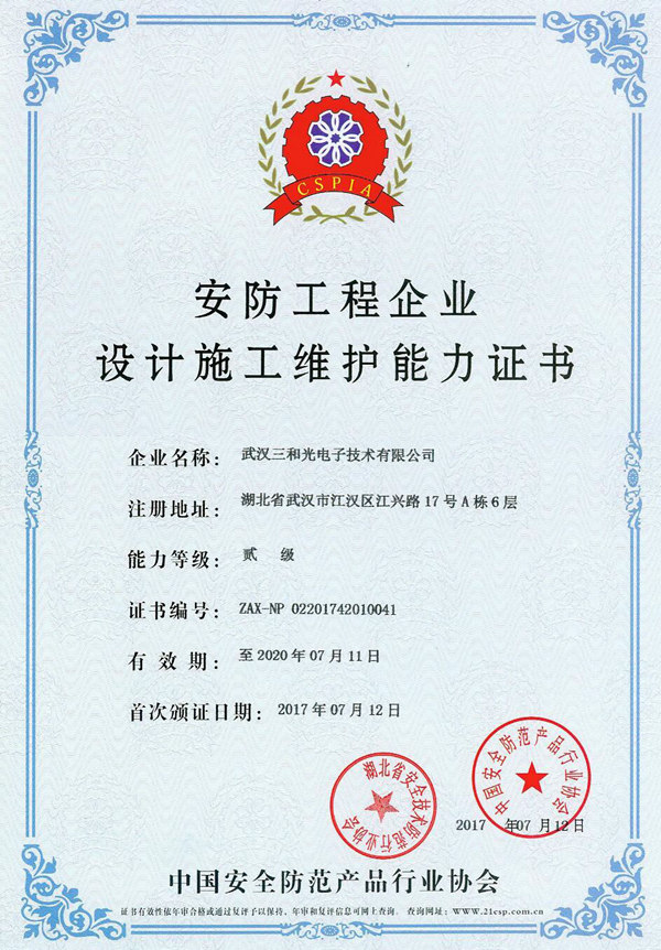 安防工程企業(yè)設(shè)計施工維護能力貳級證書