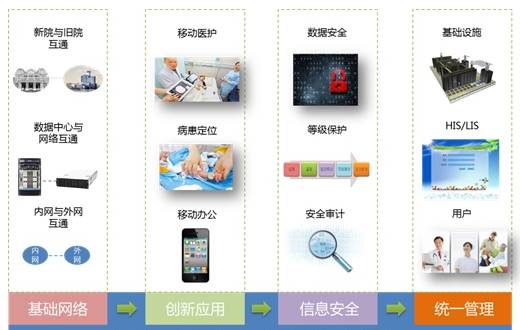 第1章 方案概述 在新醫(yī)改政策驅(qū)動下,醫(yī)療服務(wù)信息化正在成為發(fā)展趨勢,隨著信息技術(shù)的快速發(fā)展,國內(nèi)越來越多的醫(yī)院正在加速實(shí)施基于信息化平臺的整體建設(shè),以提高醫(yī)院的服務(wù)水平和核心競爭力。醫(yī)療信息化提升醫(yī)生工作效率,提高病患滿意度的同時,也給醫(yī)院管理者和信息工作者帶來了諸多挑戰(zhàn)。 挑戰(zhàn)一:在以病患為中心的醫(yī)院業(yè)務(wù)上線后,作為支撐平臺的網(wǎng)絡(luò)是否夠用,底層資源是否可用,這些全部需要評估決策,誰能給您合理的建議呢? 挑戰(zhàn)二:作為醫(yī)院信息化建設(shè)的責(zé)任人,保障信息可用的同時,也在努力尋找與信息化相關(guān)的創(chuàng)新和亮點(diǎn),這是信息部門的價值所在,但新應(yīng)用如何落地呢? 挑戰(zhàn)三:醫(yī)患糾紛正在降低病患對醫(yī)院的信任度。緩解醫(yī)患矛盾,降低醫(yī)療事故,提升服務(wù)水平是院方管理層的核心目標(biāo)。而醫(yī)院信息化方面的安全同樣不容小覷,防止病患數(shù)據(jù)被盜,保護(hù)病患隱私則成為信息部門的職責(zé)所在。 挑戰(zhàn)四:信息部門的工程師日常工作飽滿嗎?有多少是必須及時處理的事情,而又有多少是可以合理規(guī)避的事情?整個醫(yī)院的信息化應(yīng)用情況如何?如何評估?這些管理方面的問題始終困擾著信息部門。 隨著醫(yī)院對硬件設(shè)施的投入,醫(yī)院因擴(kuò)建或遷建,就診環(huán)境得到了非常大的改善,您是否迫切需要一套全網(wǎng)解決方案幫助在整個醫(yī)院信息化建設(shè)夯實(shí)基礎(chǔ),創(chuàng)造亮點(diǎn),服務(wù)醫(yī)患呢?銳捷網(wǎng)絡(luò)提供醫(yī)院全網(wǎng)解決方案,從基礎(chǔ)網(wǎng)絡(luò)、創(chuàng)新應(yīng)用、信息安全、統(tǒng)一管理四個維度闡述了如何構(gòu)建醫(yī)院一體化信息平臺,如下圖所示。 政策背景: 《電子病歷系統(tǒng)功能應(yīng)用水平分級評價方法及標(biāo)準(zhǔn)(試行)》中的4級中,提到了需要有移動醫(yī)療的應(yīng)用。 移動醫(yī)療可解決以下問題: n 無法體現(xiàn)電子病歷的后續(xù)使用價值; n 臨床工作流程需要不斷優(yōu)化,醫(yī)生查房等流程需要信息化支持; n 護(hù)理人員無法在床邊實(shí)時的采集各類病人數(shù)據(jù),同時無法開展“三查七對”的護(hù)理核查模式。 1.1 基礎(chǔ)網(wǎng)絡(luò) 網(wǎng)絡(luò)平臺的建設(shè)決定了醫(yī)院信息化基礎(chǔ)是否堅固,醫(yī)技部門的業(yè)務(wù)軟件是否可用,因此在整個建設(shè)過程中承擔(dān)著非常重要的地位。國家對醫(yī)院建設(shè)的持續(xù)投入使得醫(yī)院的就診水平逐步提高,但在“以病患為中心”的業(yè)務(wù)系統(tǒng)上線后,原有的基礎(chǔ)網(wǎng)絡(luò)已經(jīng)不能很好的提供支撐,迫切需要升級改造。在改造中,我們需要充分考慮原有網(wǎng)絡(luò)與新建網(wǎng)絡(luò)的完美融合,并提供某些應(yīng)用的個性化需求。 隨著云計算、大數(shù)據(jù)在醫(yī)院的應(yīng)用及普及,基礎(chǔ)網(wǎng)絡(luò)的核心需要考慮數(shù)據(jù)中心特性的部署,核心交換機(jī)既保障服務(wù)器、存儲設(shè)備的接入,同時提供醫(yī)生工作站、護(hù)士工作站等終端的訪問,縮短醫(yī)院業(yè)務(wù)交互和流轉(zhuǎn)的時間,降低基礎(chǔ)設(shè)施的投入,提升了管理及維護(hù)效率。 內(nèi)網(wǎng)也稱業(yè)務(wù)網(wǎng)或HIS網(wǎng),外網(wǎng)主要用作Internet訪問,兩者之間的交互隔離是醫(yī)院比較關(guān)心的問題。隨著醫(yī)院應(yīng)用的上線,內(nèi)外網(wǎng)的融合會逐漸成為趨勢。如下表所示。 1.2 創(chuàng)新應(yīng)用 當(dāng)前一些大型三甲醫(yī)院在創(chuàng)新方面走在了行業(yè)前列,通過移動終端病人門戶、病患床旁無線點(diǎn)餐等應(yīng)用給病患提供很好的就診體驗(yàn)。這些都是基于醫(yī)院建設(shè)的無線網(wǎng)絡(luò)實(shí)現(xiàn)。通過表2能清楚的了解,無線網(wǎng)絡(luò)在醫(yī)院的應(yīng)用場景。 場景 人員 內(nèi)網(wǎng)需求 外網(wǎng)需求 門診大廳 掛號醫(yī)生 通訊冗余 護(hù)士 ipad導(dǎo)診 病患(家屬) 訪問internet 輸液大廳 護(hù)士 移動輸液、RFID 病患(家屬) 訪問internet 病房 主治醫(yī)生 移動查房 放射科 移動DR 心電 無線遙測 心電監(jiān)護(hù)儀 無線監(jiān)護(hù) 護(hù)士 移動護(hù)理、RFID 病患(家屬) 床頭顯示屏平板,費(fèi)用查詢,點(diǎn)餐 訪問internet 辦公區(qū) 醫(yī)院運(yùn)營人員 移動辦公 訪問internet 院區(qū) 醫(yī)院運(yùn)營人員 移動辦公 訪問internet 病患(家屬) 無線定位 訪問internet 手術(shù)室 護(hù)士 無線手麻系統(tǒng) 移動醫(yī)療最多的應(yīng)用是在病房區(qū),病房區(qū)無線網(wǎng)絡(luò)可用與否直接決定了移動醫(yī)療的使用情況。各種實(shí)際測試表明,按照傳統(tǒng)方式(放裝、室分等)建設(shè)的無線網(wǎng)絡(luò)都存在信號不佳、漫游中斷的問題,銳捷網(wǎng)絡(luò)首推智分零漫游解決方案,1分48的部署方式,1臺AP最大覆蓋48個病房,保證每個病房的信號≥-55dbm,徹底解決了無線網(wǎng)絡(luò)不可用的問題。 醫(yī)患定位是現(xiàn)在比較創(chuàng)新的一個應(yīng)用。通過wifi、zigbe、RFID等技術(shù)實(shí)現(xiàn)嬰兒防盜、